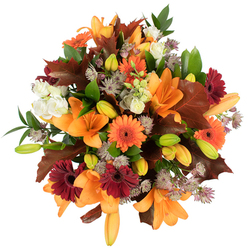 Such a beautiful mix of colors and types of flowers. The bouquet was well-packaged and arrived on time.